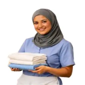 عاملة تهتم بأدق التفاصيل وتسعى دائمًا للحفاظ على نظافة المنزل وراحته.